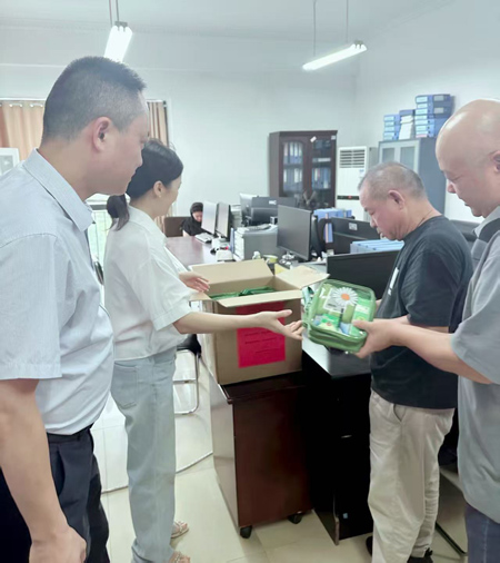 活動(dòng)現(xiàn)場,慰問組工作人員將防暑物資分發(fā)給員工,并叮囑他們在高溫天氣下作業(yè)時(shí)要注意勞逸結(jié)合,做好自我防護(hù),確保安全健康地投入工作。
